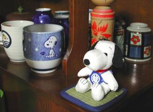 和風スヌーピーなので、茶だんすに飾る事に決定。