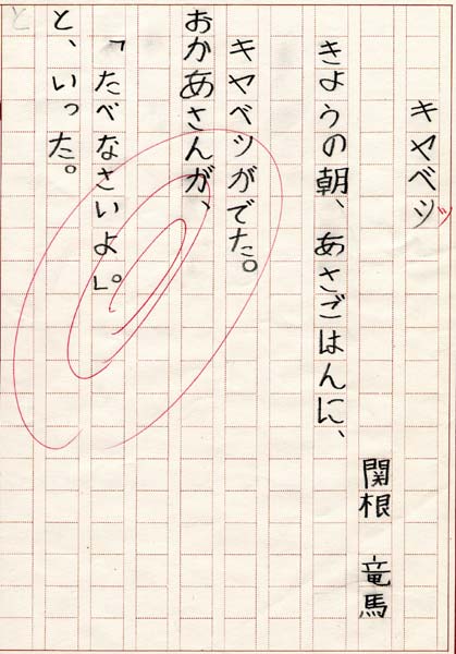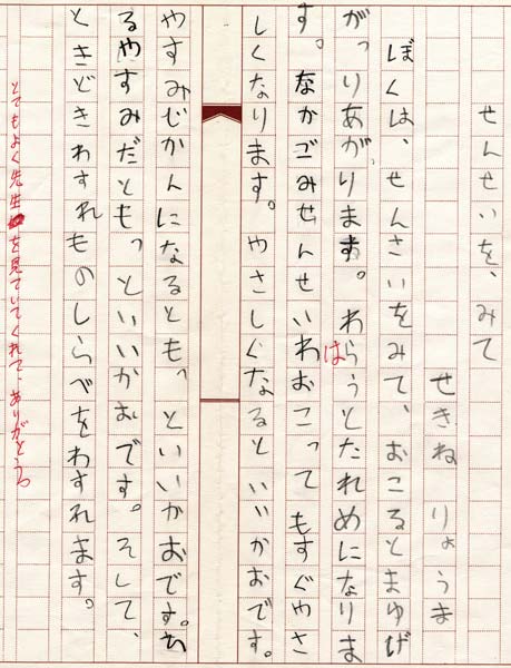 これは結構いい作文です。小学生のキレイな心が読み取れます。