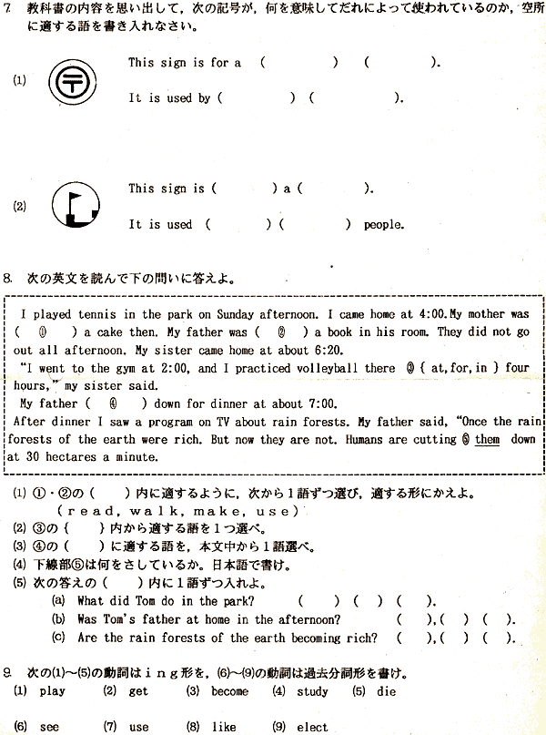 答え合わせは以下の解答用紙を見てください(赤ペンで書いてあるのは答え合わせの時に書いたものです)。