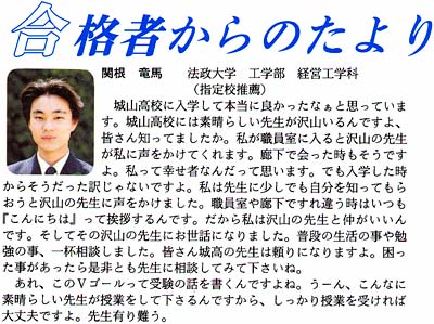 毎年せきねさんの高校では大学や就職に合格した何人かの人が