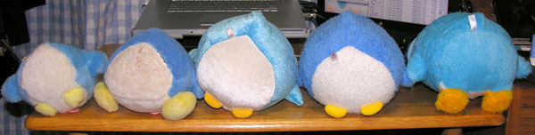 左から1980年代前半のサム?→1980年代後半のサム→1999年に復活したサム→2005年のサム→2008年のサム