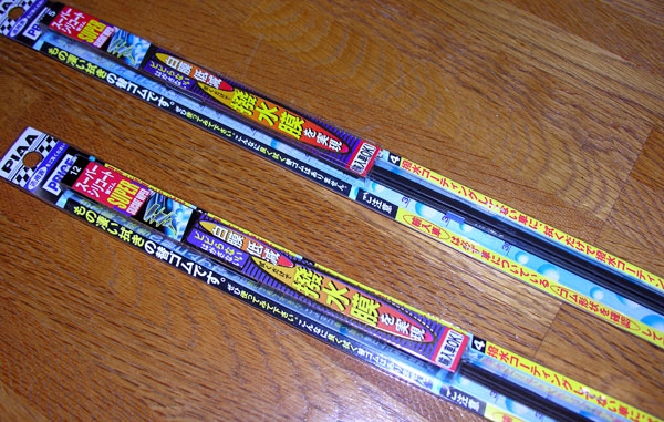 お金で買える安全ということで、ちょっとフンパツして1本1300円ぐらいのPIAAの「スーパーシリコートワイパー」にしてみた。