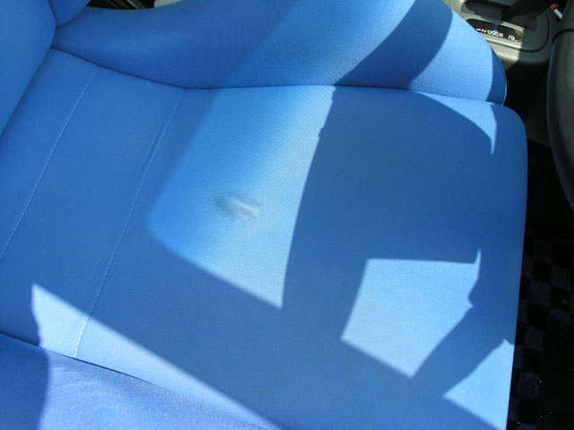 ↑シートベルトでこすれて、「穴」が開いています(涙)周りはシートベルトがあたって若干黒ずんでいます。