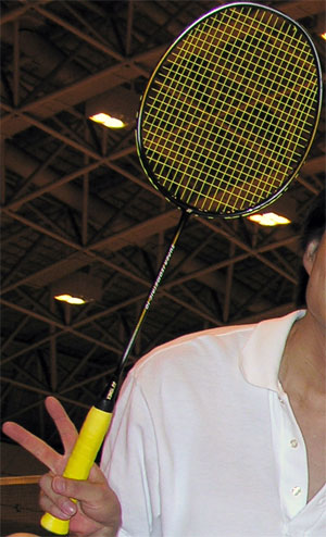 で、ご覧のように「黄色いガット」に「黄色いグリップ」と昔から派手なのが好きで趣味の悪いせきねさん・・・