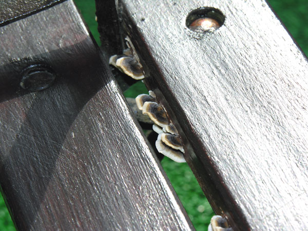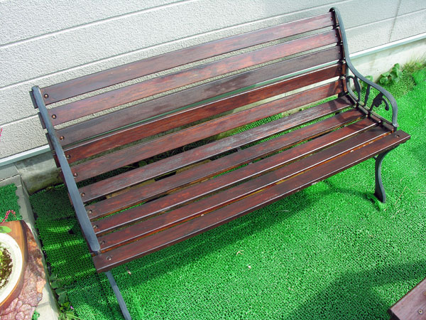 (我が家には似合わないシャレたベンチで、たしか結婚式のカタログギフトで父親が選んだ一品)