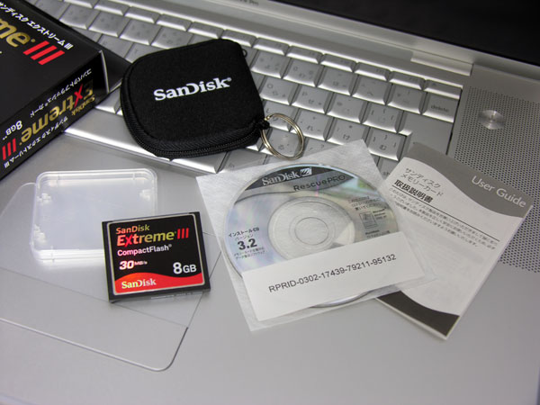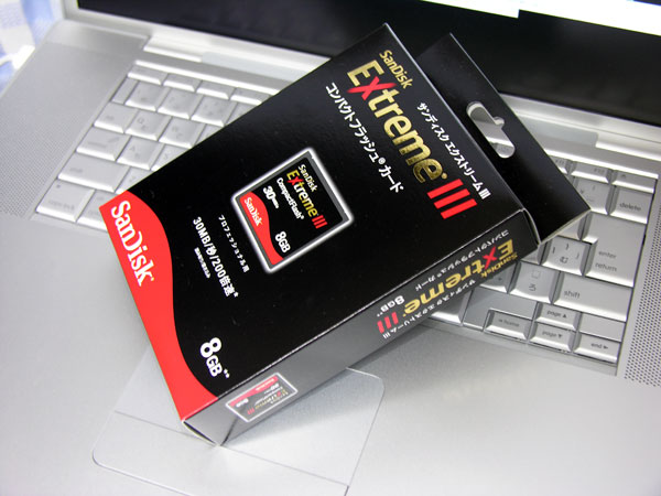 ↑高速記録/読み出しできるCF(コンパクトフラッシュ)を購入(SanDiskのエクストリーム3の8GB)。