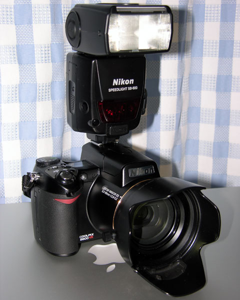 (最新の「SB-900」の取り説にもCOOLPIX 8800のことがちゃんと書いてあります。発売から4年経っているのにさすがCOOLPIX 8800!。だけど、ヨドバシの店員は知らないらしく、使えるんですか?(使えないんじゃないの?)ってノリでした・・・COOLPIX 8800をなめんなよ。COOLPIX 8800の方の取り説にも2004年の時点でちゃんとSB-800が接続可能って書いてある)