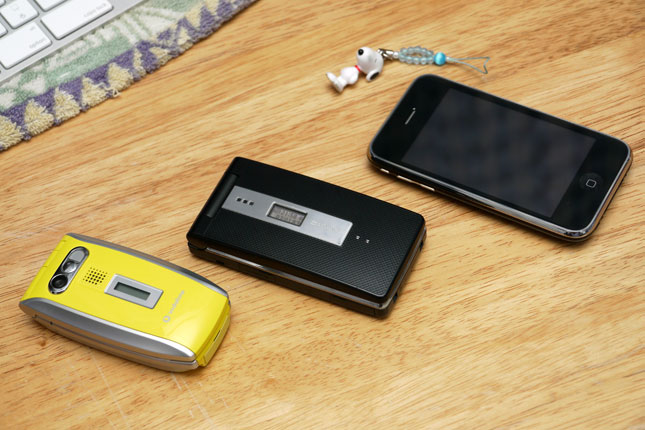 その後も、時々同窓会関連の連絡が入ったり、個人的に人生色々あって2007年のはじめに画像中央の携帯を契約した感じです。