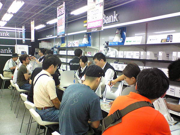 ↑「ソフトバンク」のブースで契約している人達。