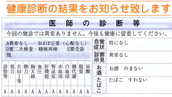 ↑健康診断をうけ始めて3年連続で今年も「オールA」のパーフェクト!