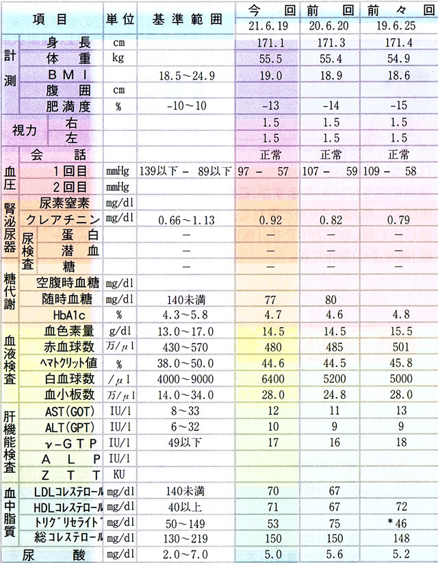 で、今年の健康診断の結果を「恐る恐る」見てみると・・・