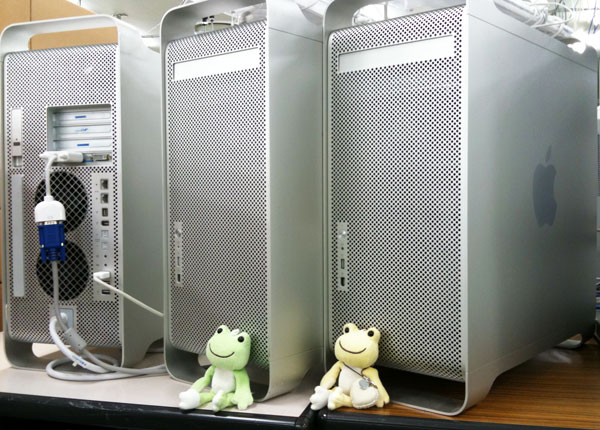 ↑職場のMacちゃん達(デスクトップ3台)。