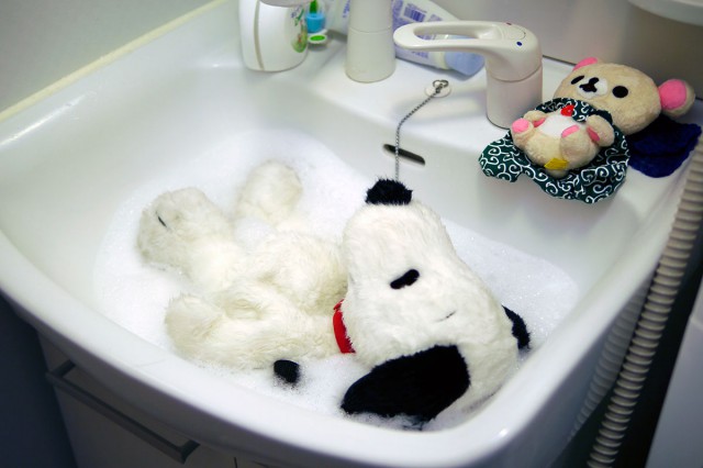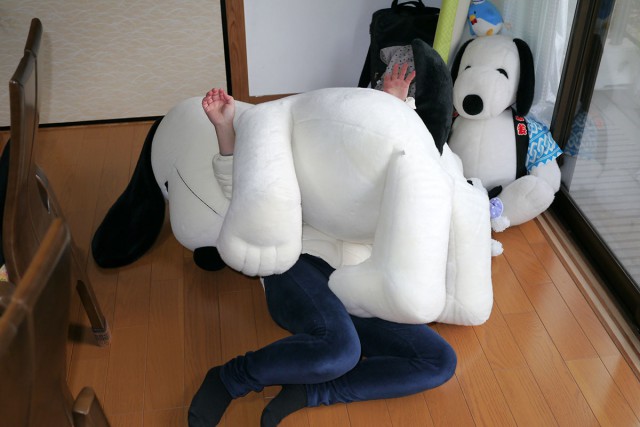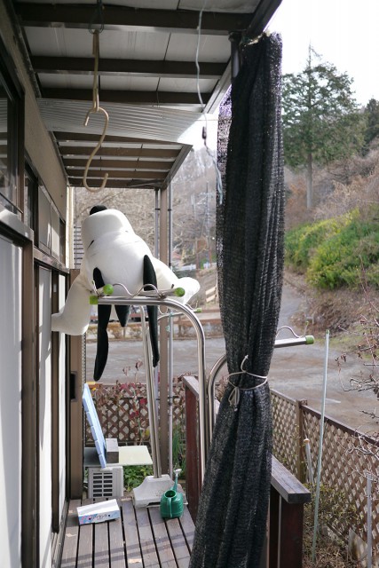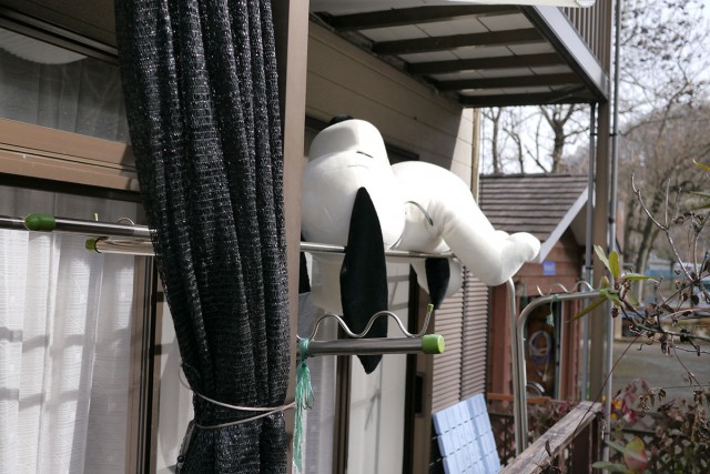 (巨大なので干すのも大変・・・。この後奥さまと2人でパンパンたたいて(ゴメンよスヌーピー)、ホコリを落としてあげました。)