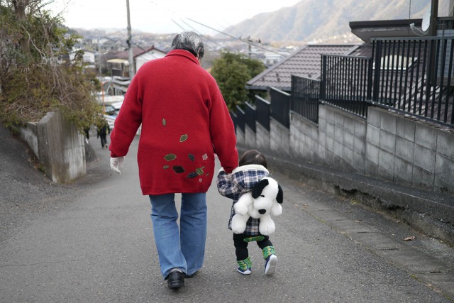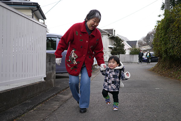 ↑おばあちゃんとお散歩で寒くてもご機嫌です♪