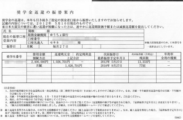 せきねさんもここの奨学金を利用しておりますが、せきねさんが利用していた頃は「日本学生支援機構」と言う名前ではなく、その前身の「日本育英会」という名前でした。