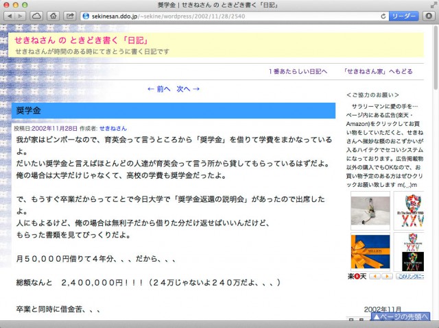こんばんは、高校・大学と「奨学金」のお世話になっていたせきねさんです。