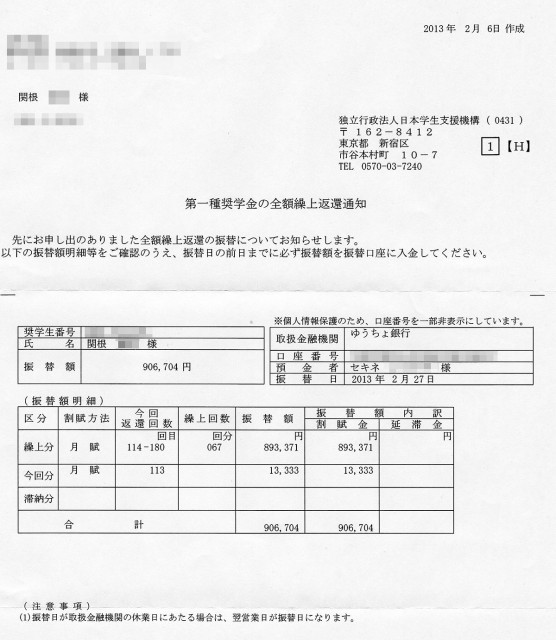 この奨学金の残額を一括で「繰上げ返済」することに決めました!!
