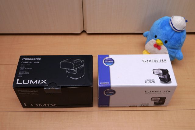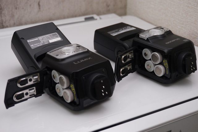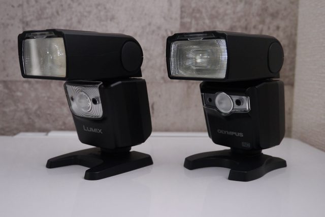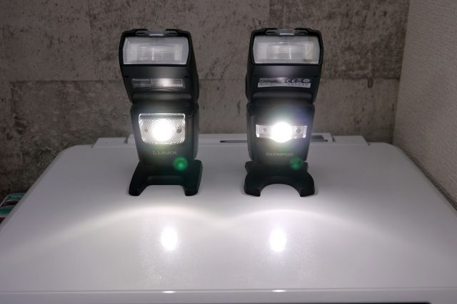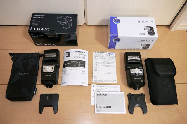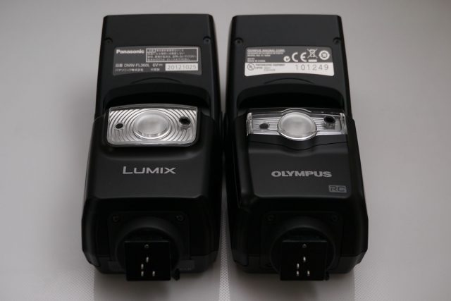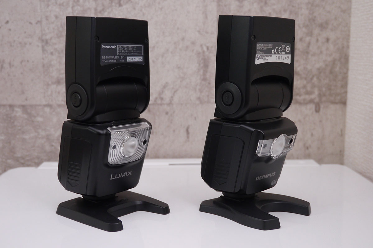 せっかくなので、Panasonicの「DMW-FL360L」とオリンパスの「FL-600R」を並べて比較してみたいと思います。