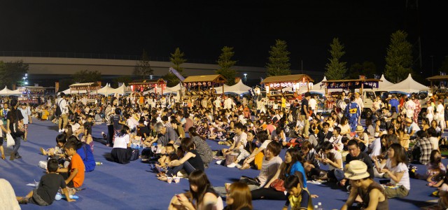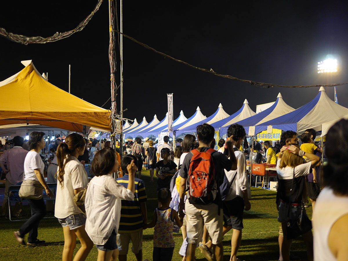 (↑市民まつりは食べ物の屋台ばかりで、子供が喜ぶような「金魚すくい」などの遊べる屋台はありませんでした。夜だから?)