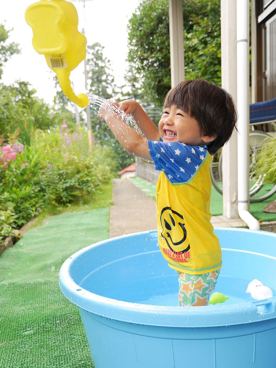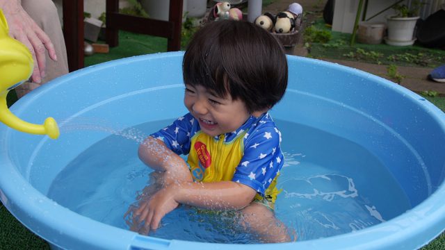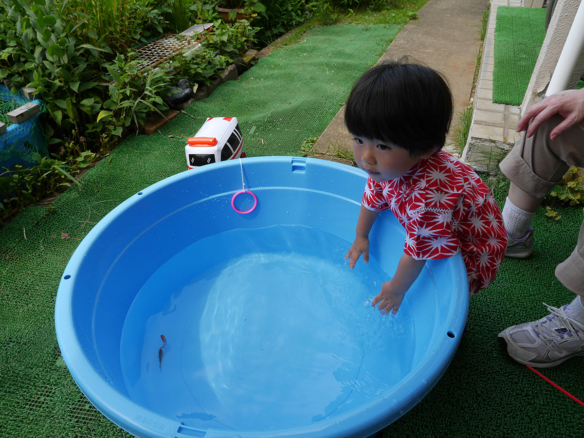 実家の津久井に帰れば、多少大きなビニールプールも置けるので