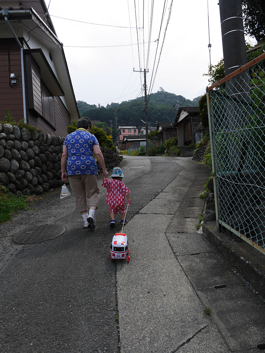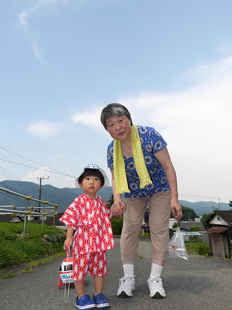 ↑お子さまはおばあちゃんに連れられて、近所の中野神社の縁日へ出かけていきました。