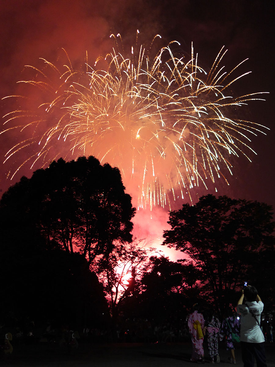 ↑ベンチに座って花火見物です。