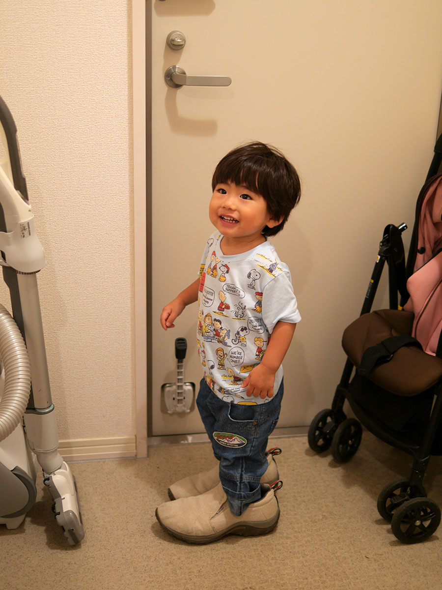 ↑せきねさんの靴を履いて外に出ようとしています・・・(水虫がうつるからやめておいた方が・・・)
