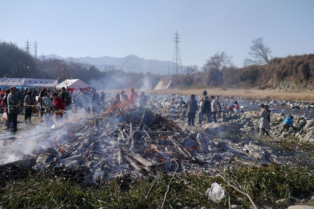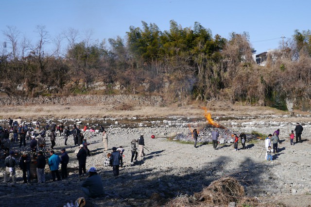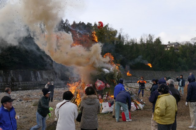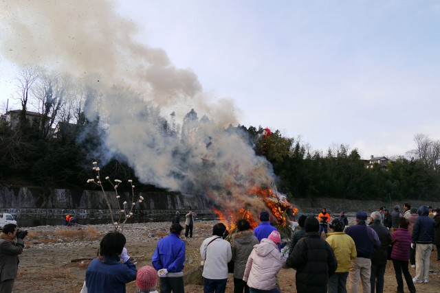 「どんど焼き」は正月の「門松」や「しめなわ」や「書き初め」などを持ち寄って燃やすというお正月の行事で、どんど焼きの火にあたったり焼いたお餅を食べると、1年健康でいられるなどの言い伝えがあるそうです。