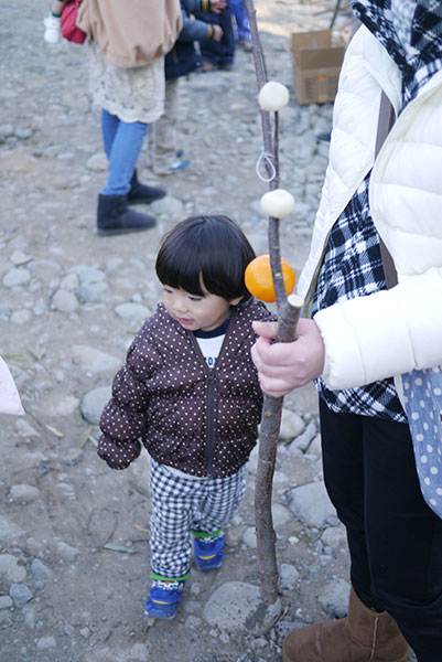 ↑木の枝に「お餅」をさした物を地域の方が無料で配っていました。