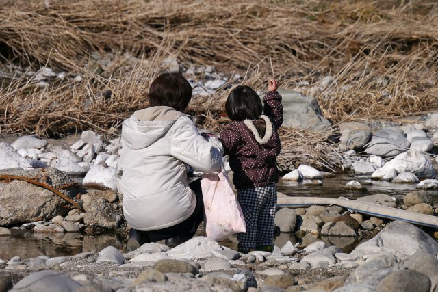↑お子さまは河原の「石投げ」が気に入ったようで、おばあちゃんとずっと一緒に遊んでいました♪