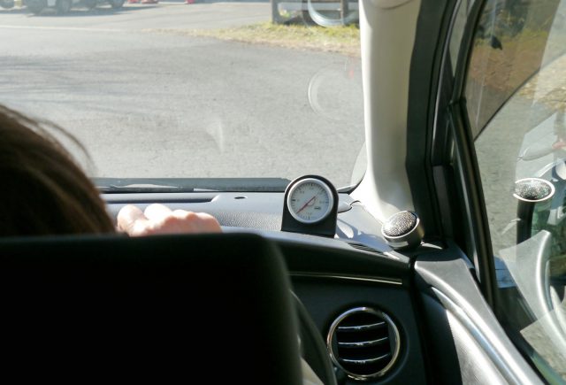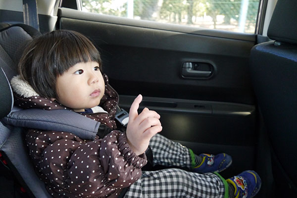 ↑おばあちゃんの運転するクルマに乗せてもらって喜んでいるお子さま。
