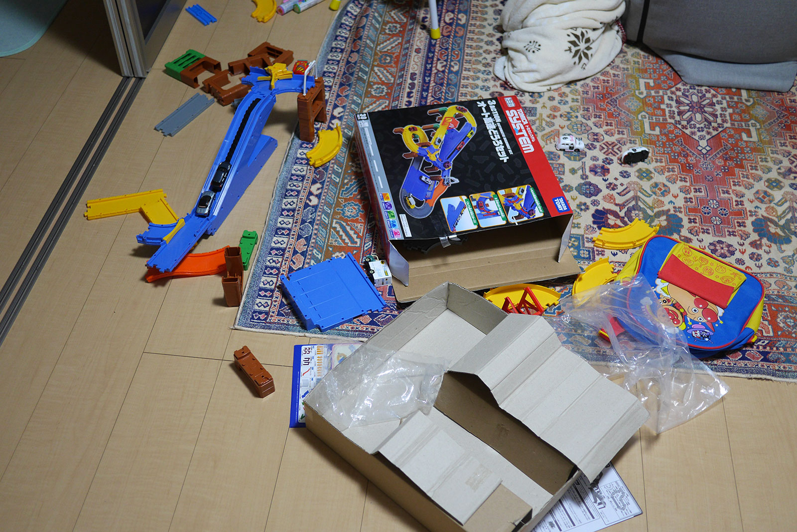 (ずっと「プラレール」派のお子さまでしたが、最近は「トミカ」も同じくらい好きです。)
