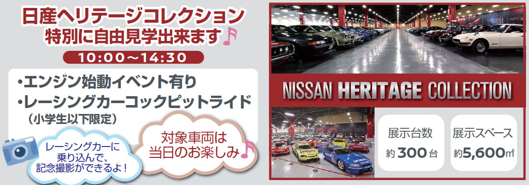 ↑「NISSAN HERITAGE COLLECTION(ヘリテージコレクション)」の自由見学が出来るとのことで、それを目当てに行く事にしました。