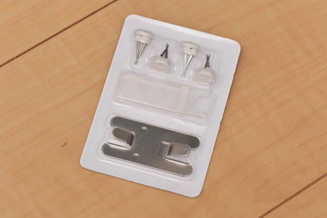 ↑付属の「専用固定ピン」がこの商品のミソで、ピンには2つ可動式の針が出ており・・・