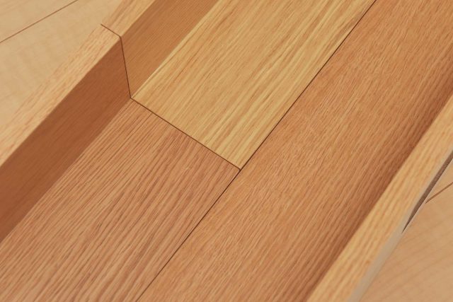 ↑木目のある表面は「オーク材」ですが、中の芯材には「MDF」が使用されています。
