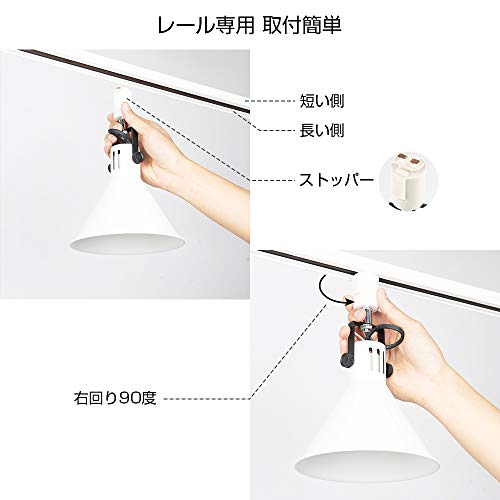 ↑こちらの画像のようにレール自体を天井に直接取り付けるのが一番スッキリとした見た目にはなるのですが、でもこれをやる為には電気ケーブル(電線・VVF線)をいじる必要があり、その作業には電気工事の資格が必要となり一般ピーポーは法律的に作業ができないのです(って2本の線を抜き差しするだけの意外と簡単な作業なのでこっそりやってしまう人も沢山いますが・・・)。