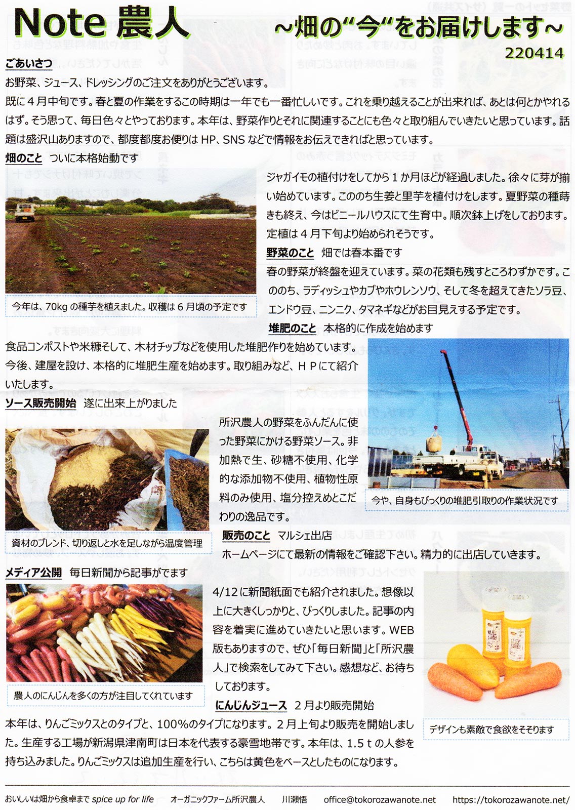 このブログで毎月紹介しておりますが、せきねさんが定期購入している農家直送の「旬の野菜セット」の生産者さんである「所沢農人(ところざわのうと)」さんが・・・