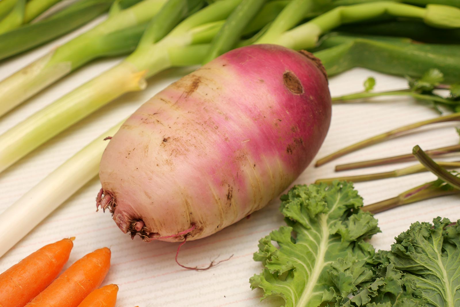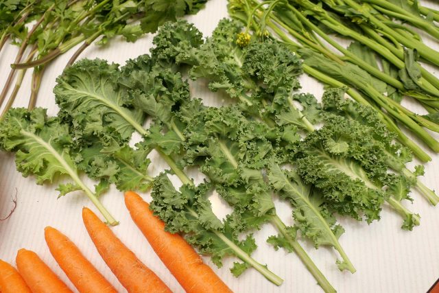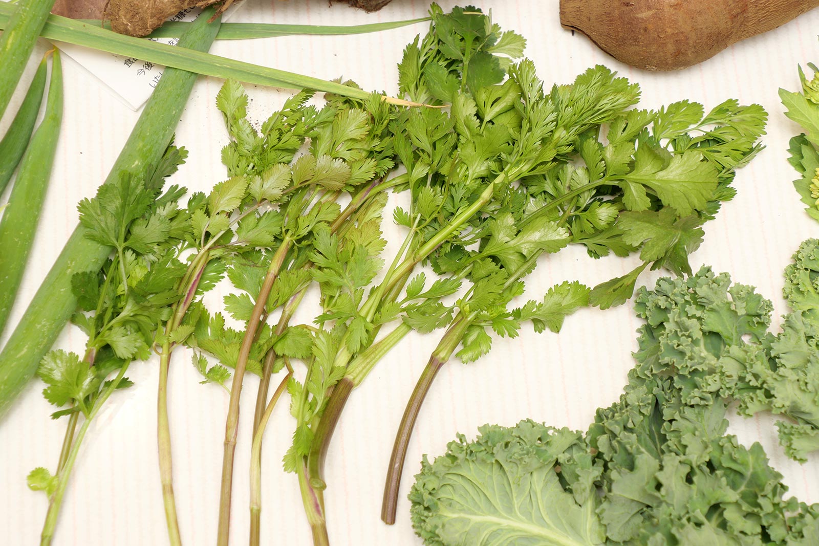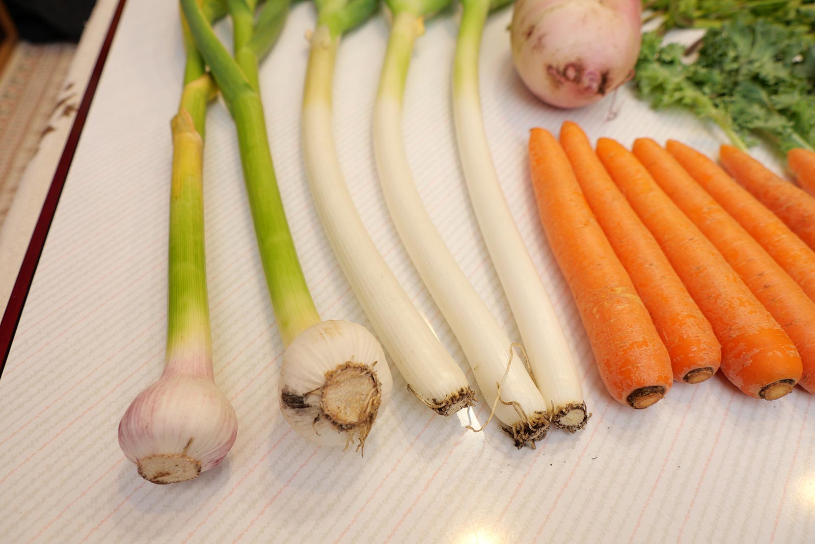 ・高菜の菜の花 ・にんじん ・カラー大根 ・長ネギ ・ヤーコン ・里芋の親 ・カラー人参 ・ケール ・パクチー ・ニンニク(キャベツ菜の花から変更とのこと)