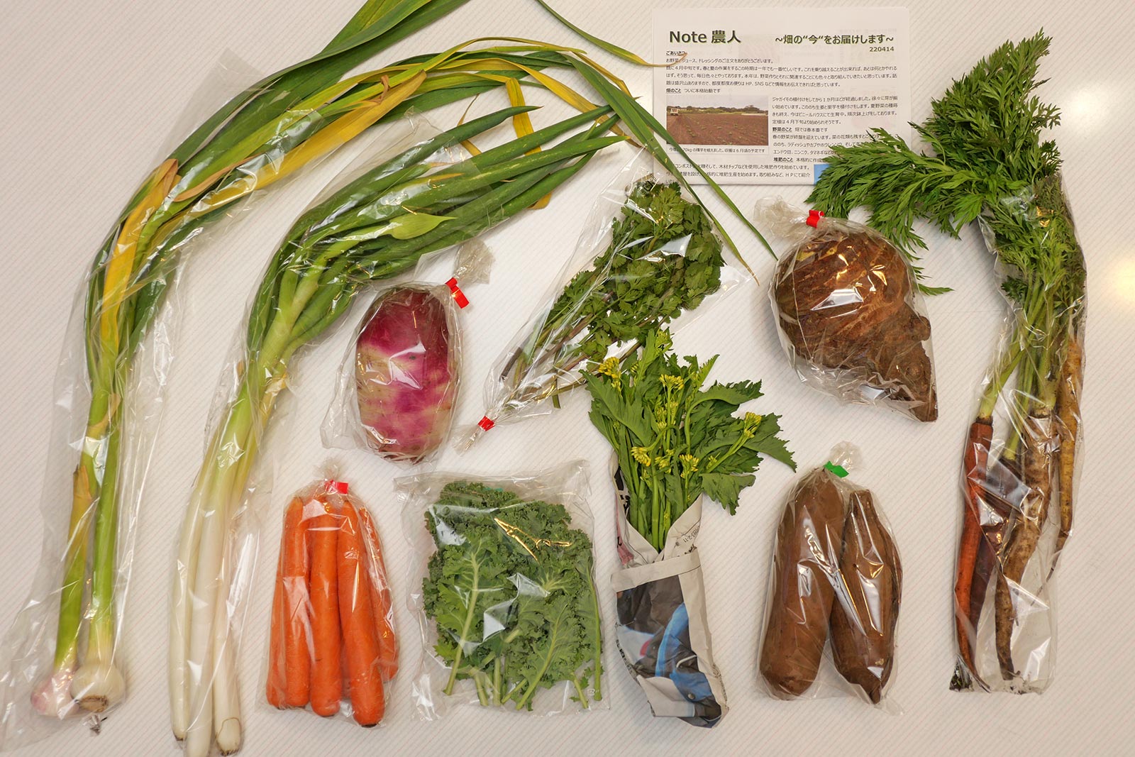 ↑オーガニックファーム所沢農人さんの「旬の野菜詰合せセット(Mサイズ)」2022年4月分がこちらです。