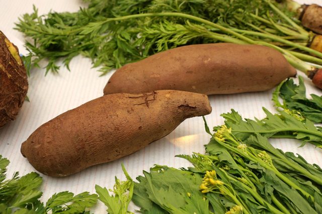 ↑甘くて美味しい生食できるお芋「ヤーコン」。梨のような甘みとシャキシャキ食感でどんどん食べてしまいます。