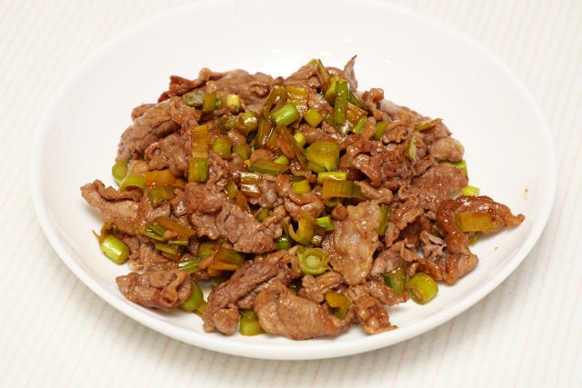 ↑長ネギのようなニンニクの茎の部分を豚肉と一緒に炒めました(味付けは焼肉のタレ)。ネギのような食感にきつ過ぎない程良いニンニク味が豚肉によく合って美味しかったです。