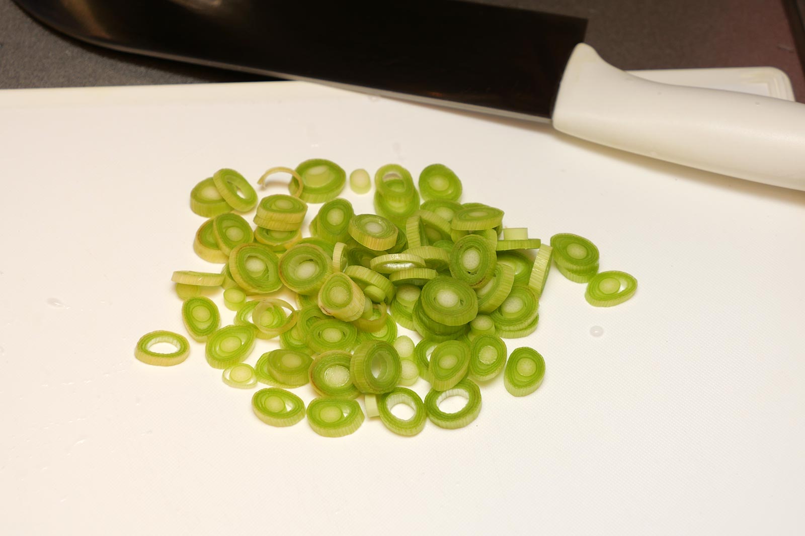 ↑今回の野菜セットに入っていた「里芋の親」と「長ネギ」を使って豚汁を作る事にしました。長ネギは豚汁の鍋の中に入れて調理するのとは別に、刻んだだけの「後乗せ用」も用意し・・・