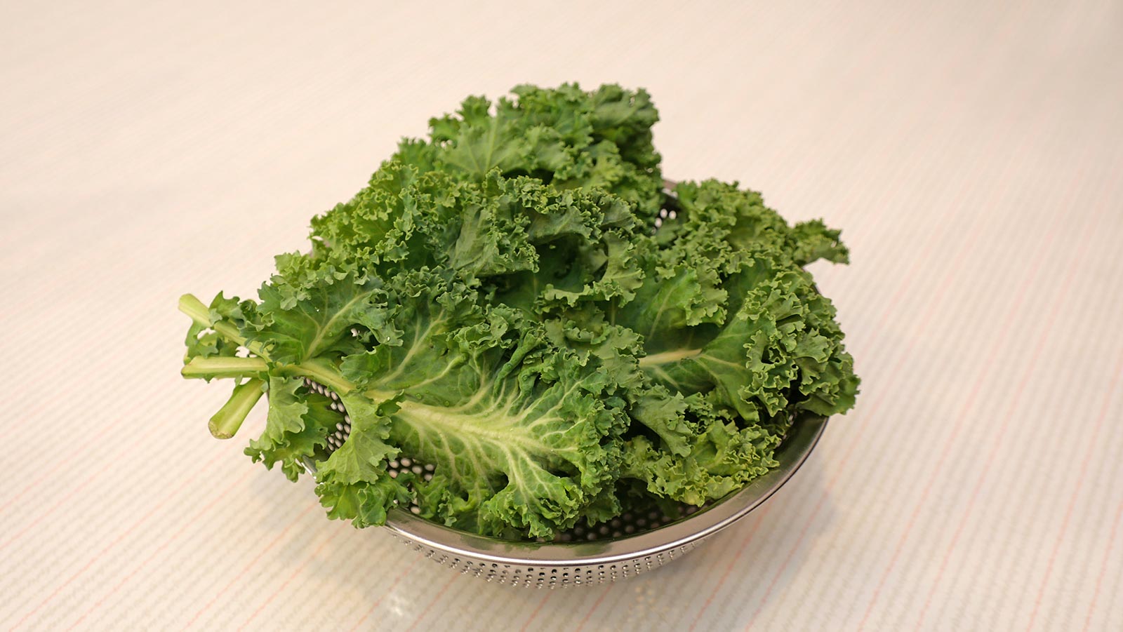 ↑「ケール」。オリーブオイルをかけてトースターで焼いてケールチップスにするとお子さまが喜ぶので我が家はいつも「おやつ」としていただきます。