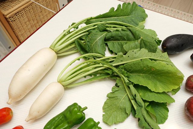 ↑葉付きの「ミニダイコン」。我が家は大根の「葉っぱ」が好きなので葉付きで入れてくれると嬉しいですし、大根自体も使いやすいサイズで便利です。