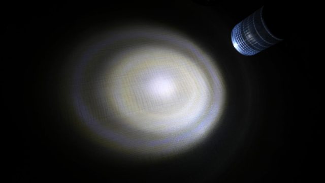 ↑少し離れた位置から壁に照射。懐中電灯として必要十分な明るさです。