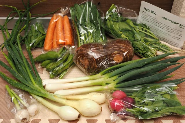 ↑オーガニックファーム所沢農人さんの「旬の野菜詰合せセット(Mサイズ)」5月分がこちらです。