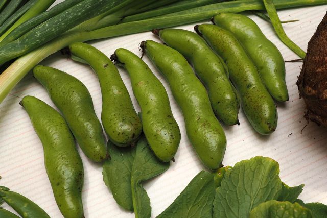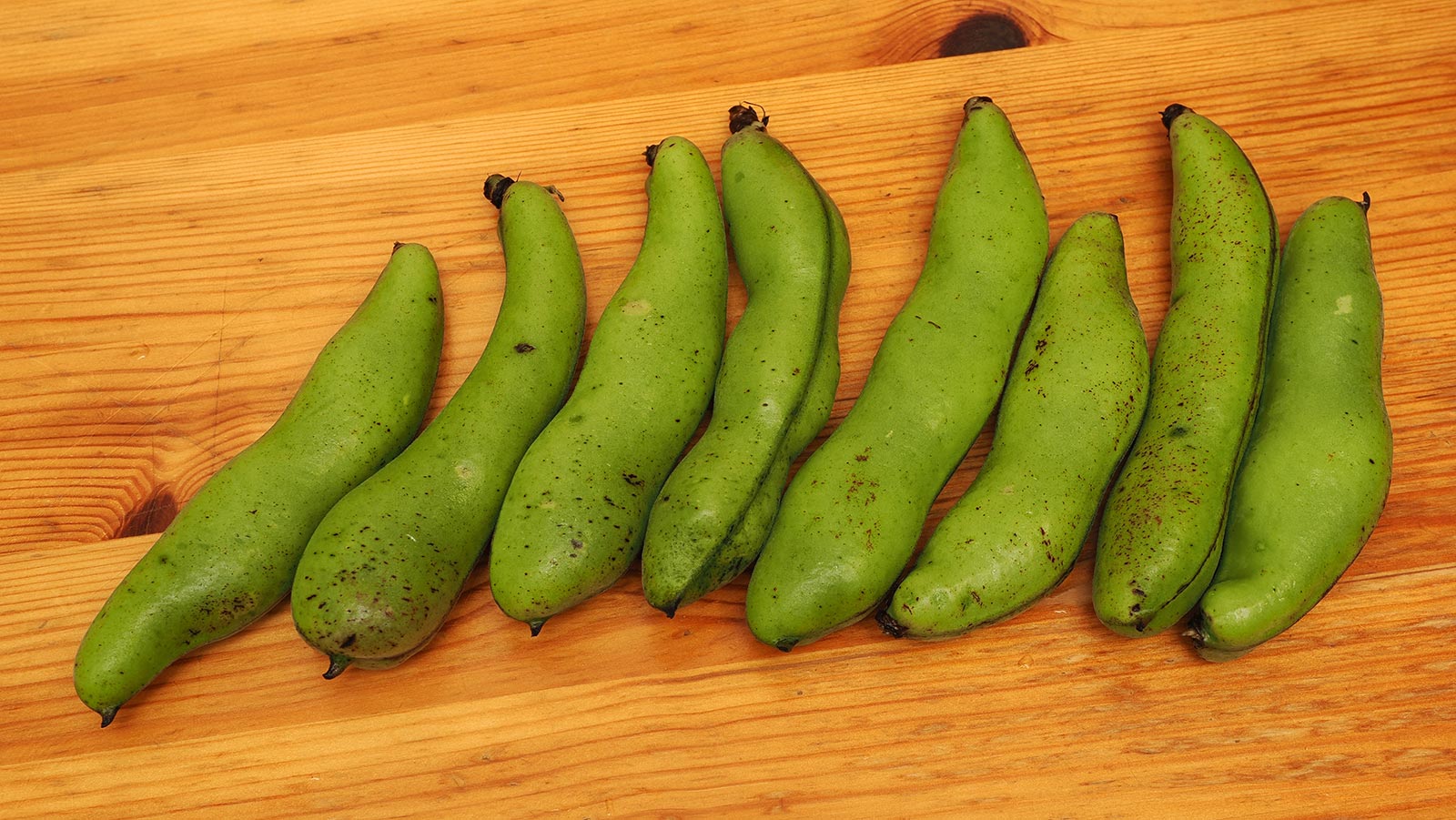 ↑「ソラマメ」。初物でゆでる・蒸す以外に「豆ご飯」もオススメとのこと。