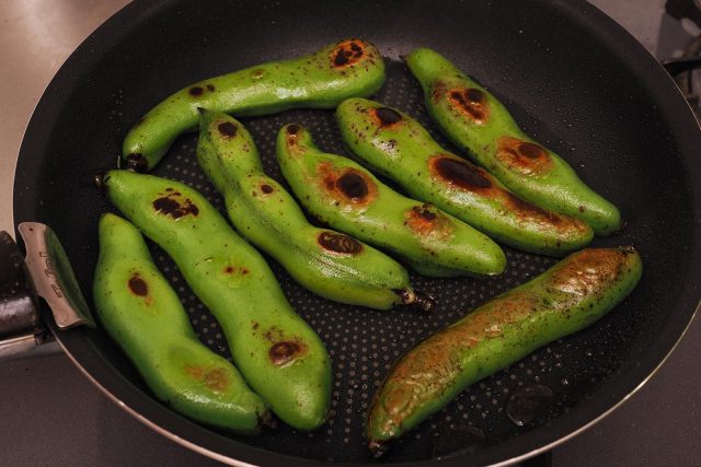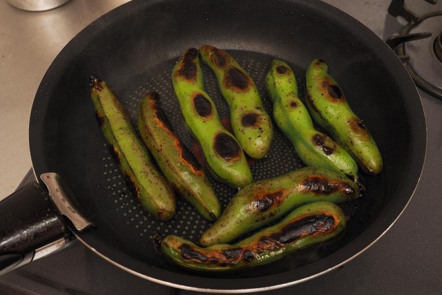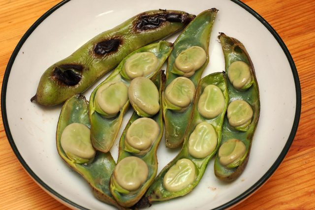 ↑「ソラマメ」を茹でるか蒸すか炊くか迷いましたが、焼きます。