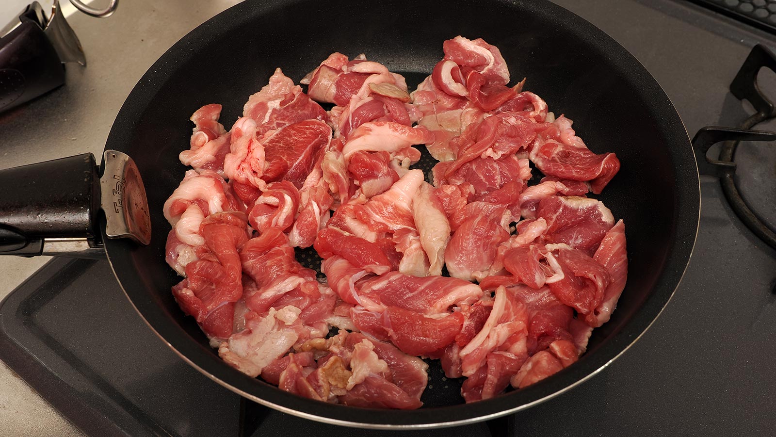 ↑鶏肉の中まで火が通ったら(中まで白くなったら)、全体を混ぜ合わせるように炒めます。