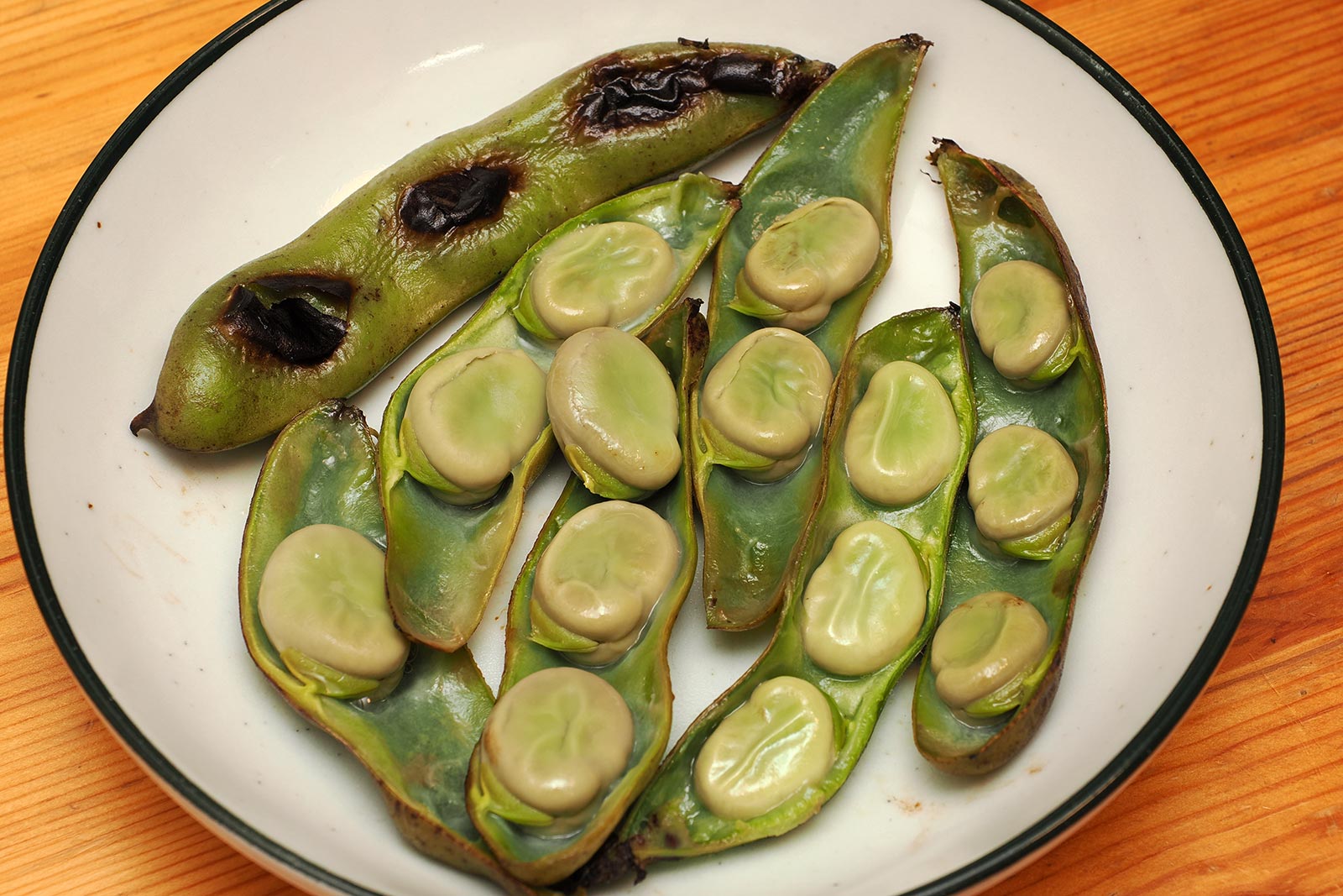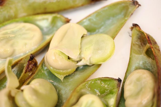 ↑「焼きソラマメ」の完成です。皮が黒くなっても中身はご覧の通り無事です。